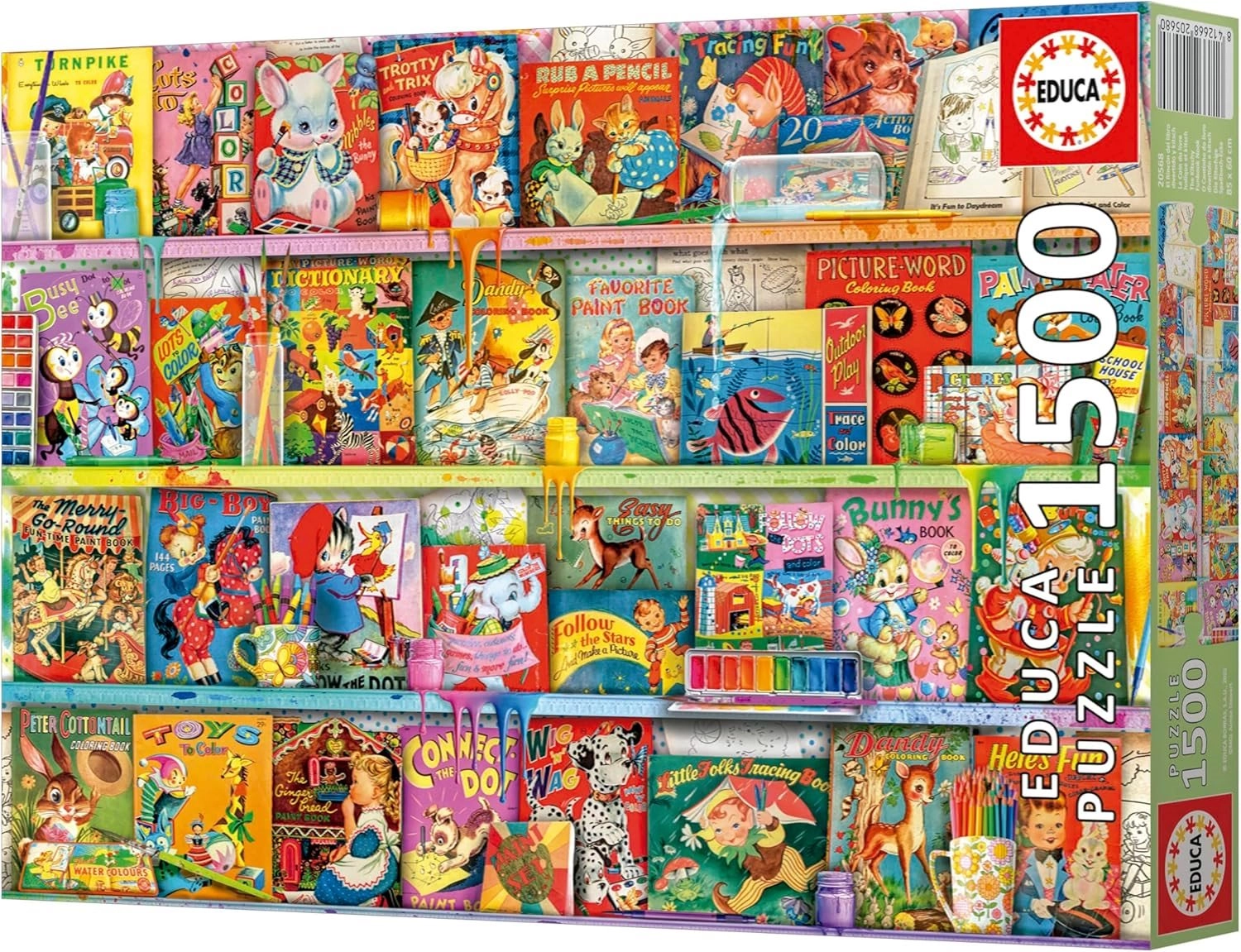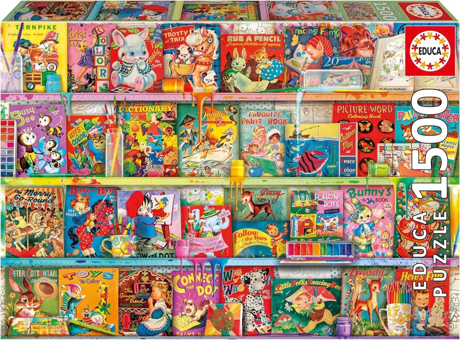 Découvrez la joie de l’assemblage avec le puzzle EDUCA de 1500 pièces représentant un coin lecture kitsch et amusant. L’emballage inclut de la colle gratuite pour fixer facilement l’image terminée au format env. 85 × 60 cm. Idéal pour les amoureux des livres qui souhaitent profiter d’une qualité de fabrication et de couleurs vives pendant de longs moments de détente.