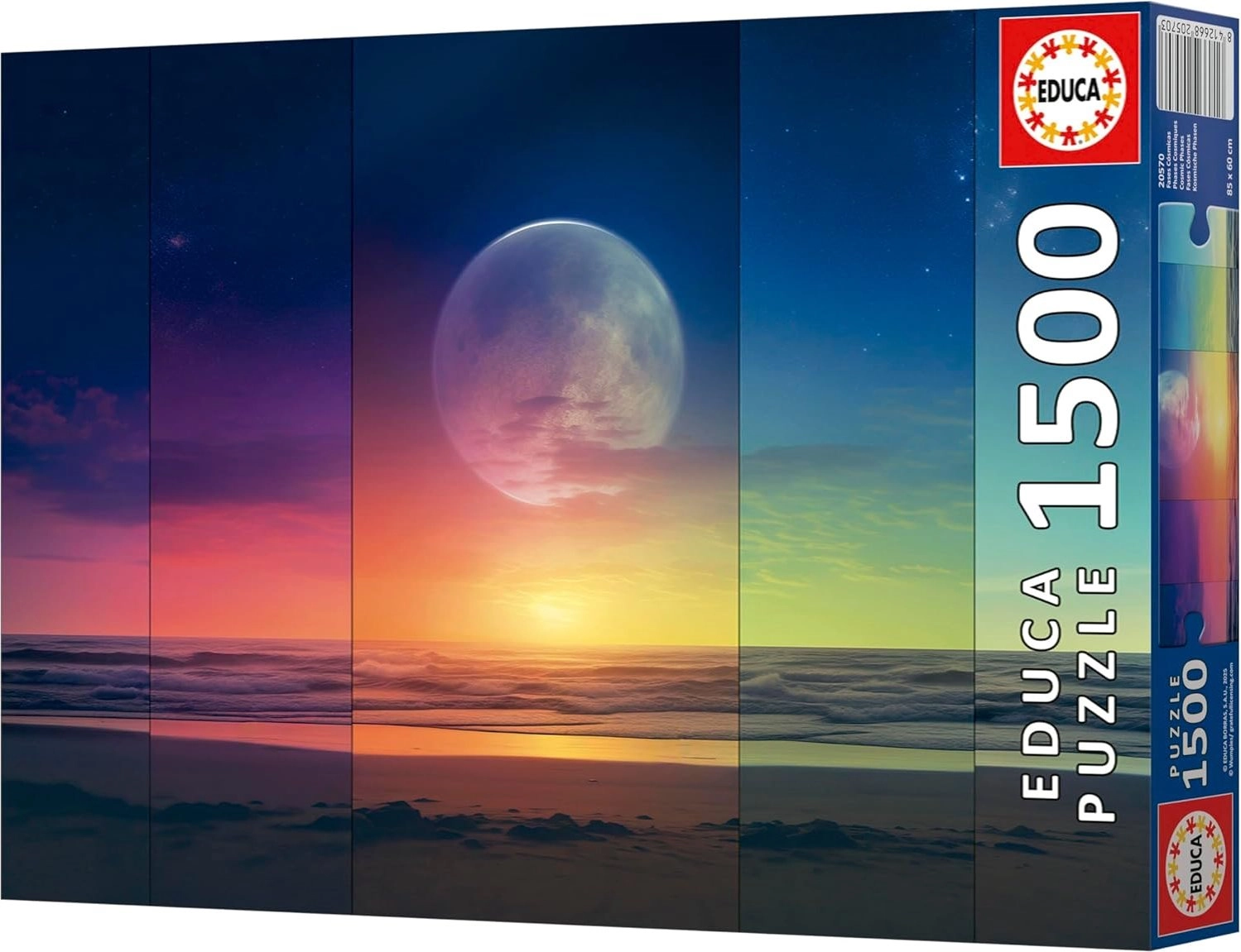 Découvrez la beauté de l’univers avec le puzzle EDUCA Phases cosmiques de 1500 pièces. L’emballage comprend de la colle gratuite pour fixer facilement l’image terminée. Une fois assemblé, le puzzle mesure environ 85 × 60 cm et convient parfaitement aux amateurs d’astronomie comme aux assembleurs les plus exigeants.