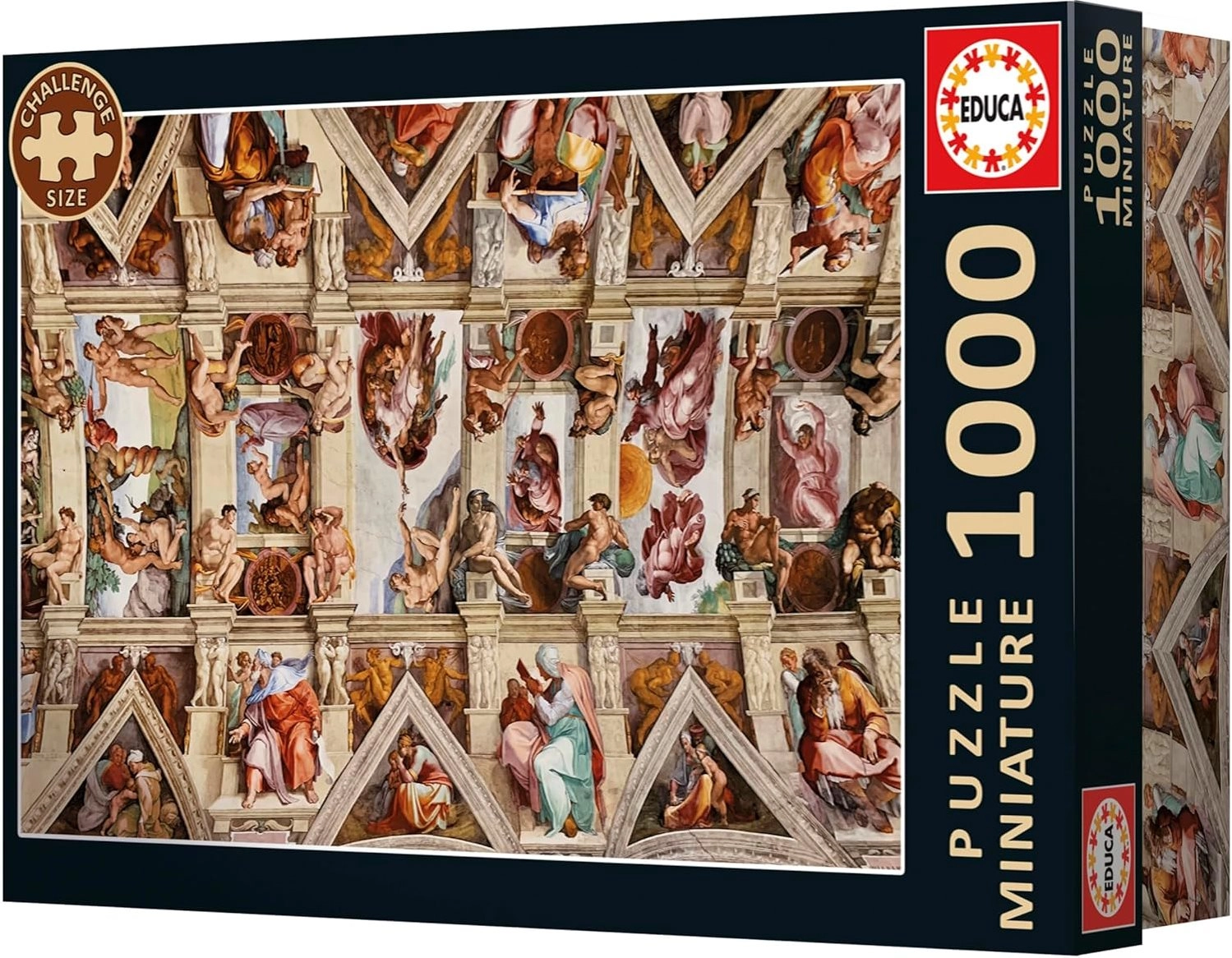 Le puzzle miniature EDUCA au motif de la Chapelle Sixtine offre une expérience d’assemblage intense sur une petite surface. Grâce à ses pièces réduites, il s’intègre presque partout, tout en permettant d’apprécier les riches détails de la célèbre fresque de la Renaissance. Le paquet contient également de la colle gratuite, afin que vous puissiez fixer durablement votre création et l’exposer dès que vous l’avez terminée.