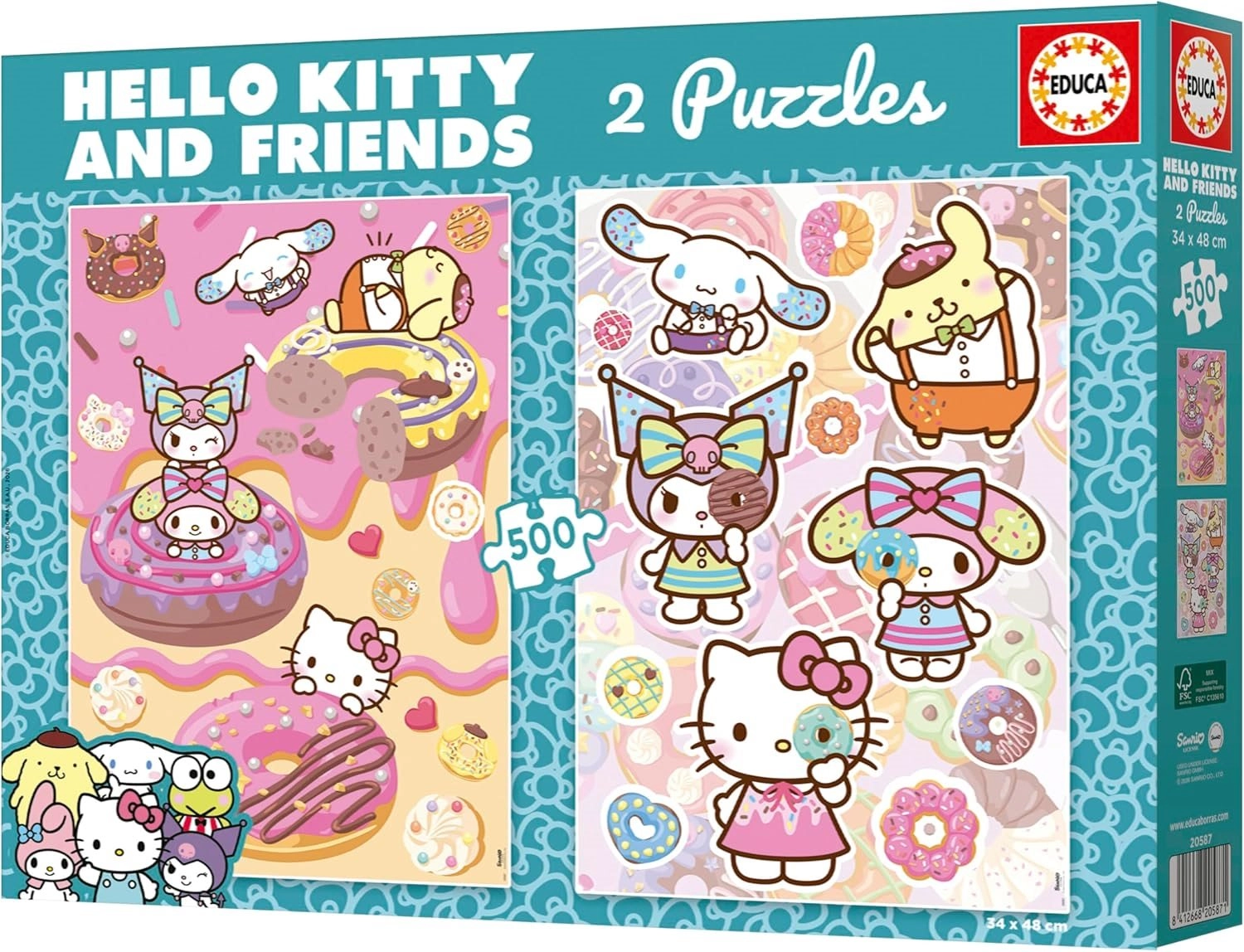 Profitez de moments ludiques avec la célèbre héroïne HELLO KITTY dans un coffret de deux puzzles de 500 pièces chacun. Une fois assemblé, chaque puzzle mesure env. 34 × 48 cm et la boîte contient gratuitement la colle FIX PUZZLE® pour fixer facilement l’image terminée. Un excellent choix pour les amateurs de motifs mignons et de détente autour des puzzles.