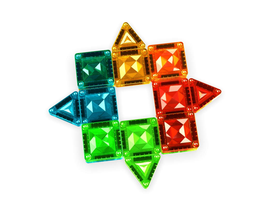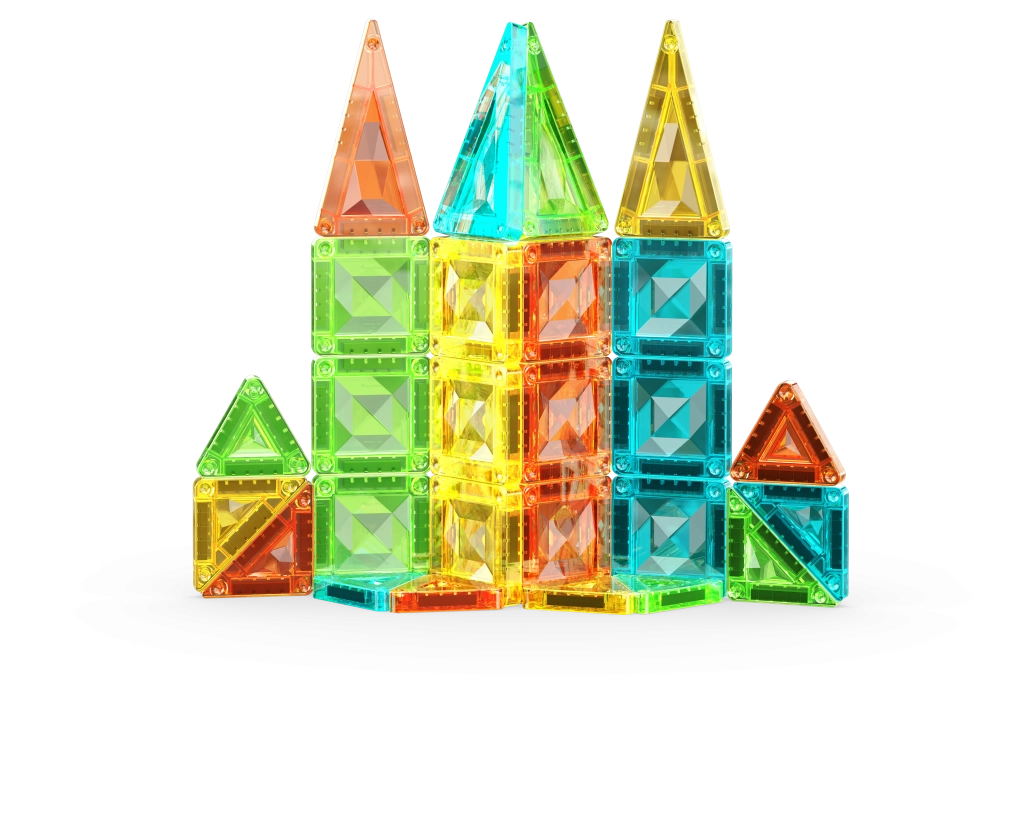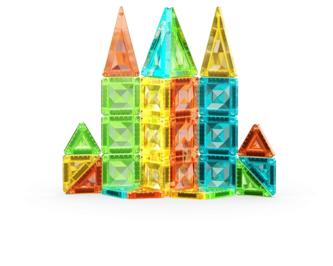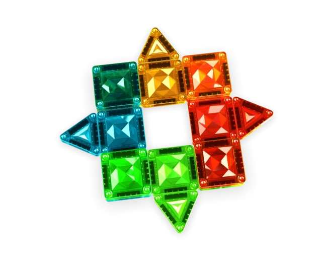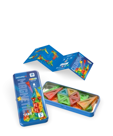 Le set comprend différentes formes pour des combinaisons infinies : carrés, triangles isocèles, équilatéraux et rectangles (triangles rectangles). Toutes les pièces sont compatibles avec les autres sets Geomag Tiles, vous pouvez ainsi agrandir progressivement la collection et construire des structures encore plus grandes.