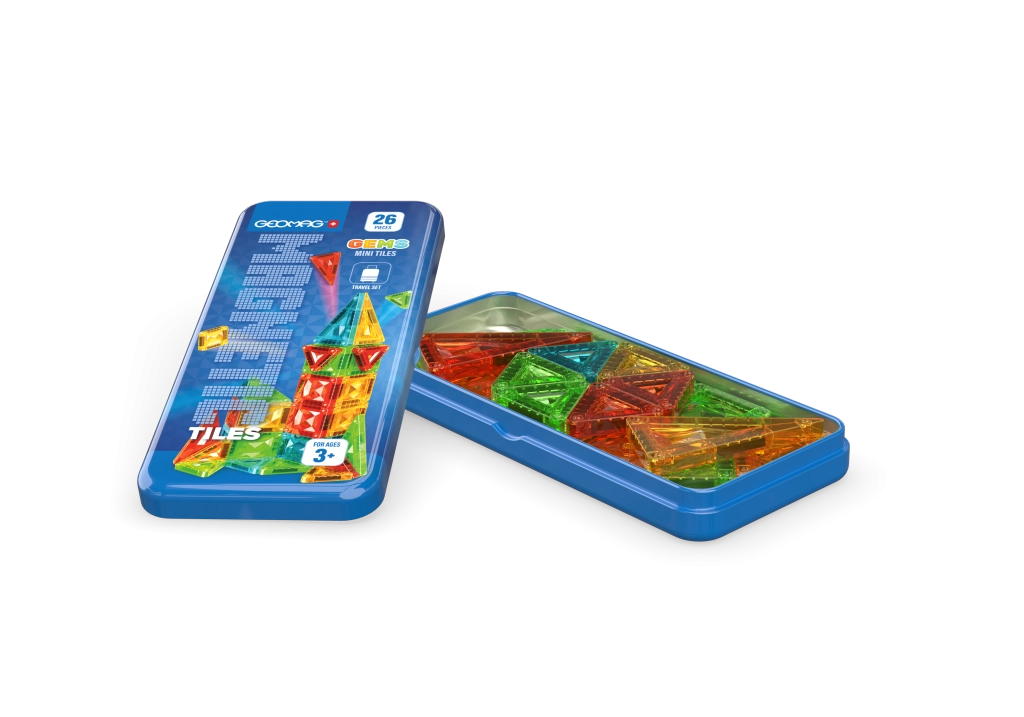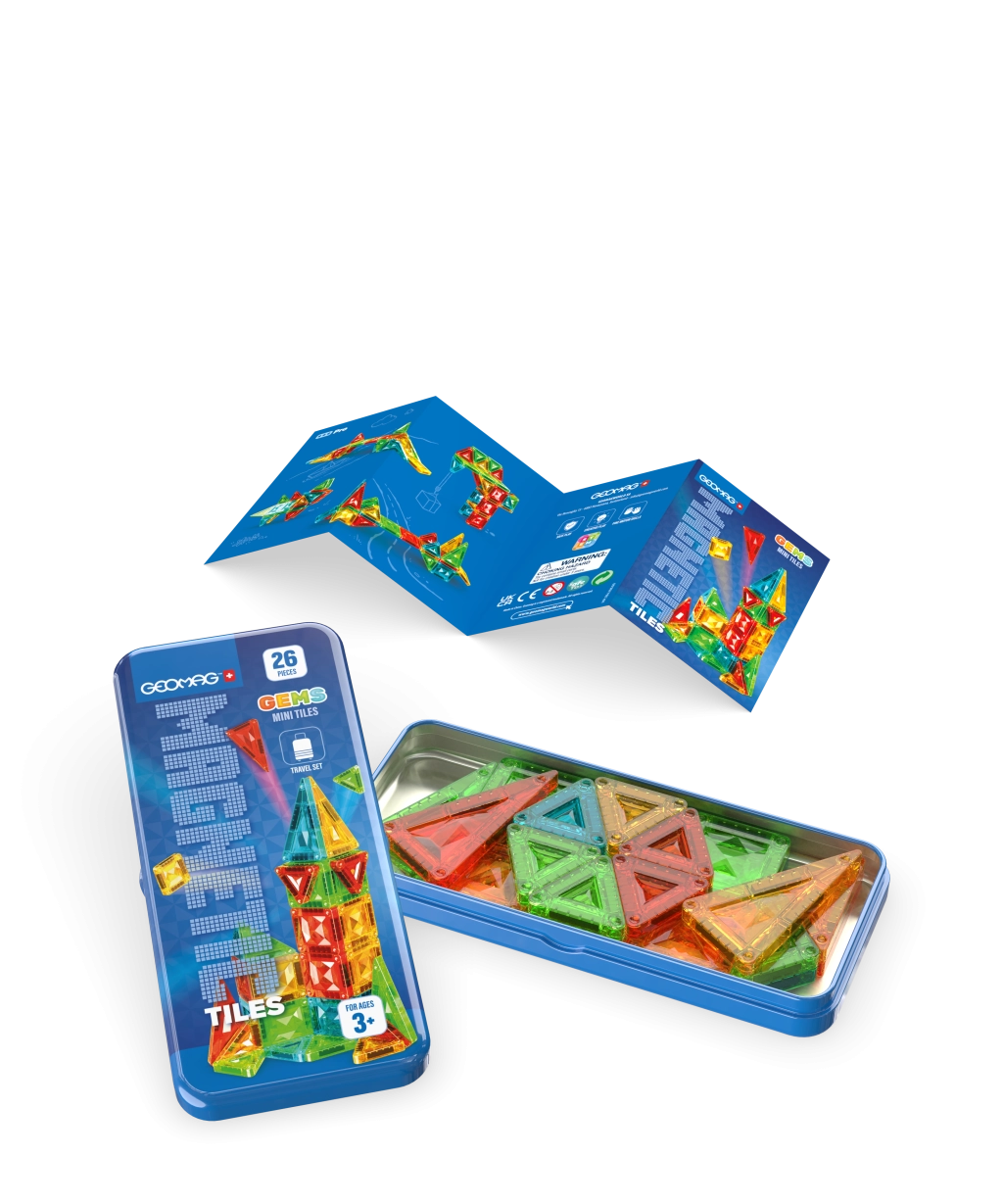 Avec le jeu magnétique Geomag GEMS Mini Tiles, les enfants construisent facilement des tours, des petites maisons et des formes 3D. Grâce aux pièces transparentes à effet “gemme”, naissent des constructions stables et spectaculaires qui favorisent la créativité et la motricité fine ainsi que la représentation spatiale. La boîte métallique compacte garde toutes les pièces ensemble – un choix parfait pour voyager, au restaurant ou lors de visites.