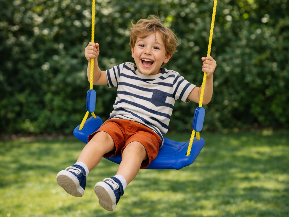 L’installation se fait en un rien de temps : les cordes se terminent par des anneaux et crochets métalliques pour une suspension sûre sur une structure de jeu, une pergola ou une branche d’arbre. La balançoire est destinée aux enfants à partir de 3 ans et constitue un excellent moyen de favoriser l’équilibre, la coordination et l’activité physique en plein air comme à la maison.