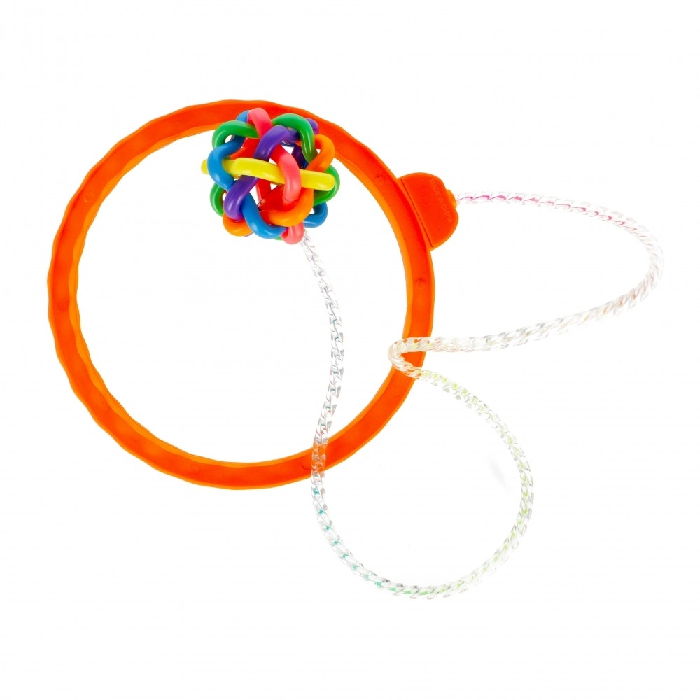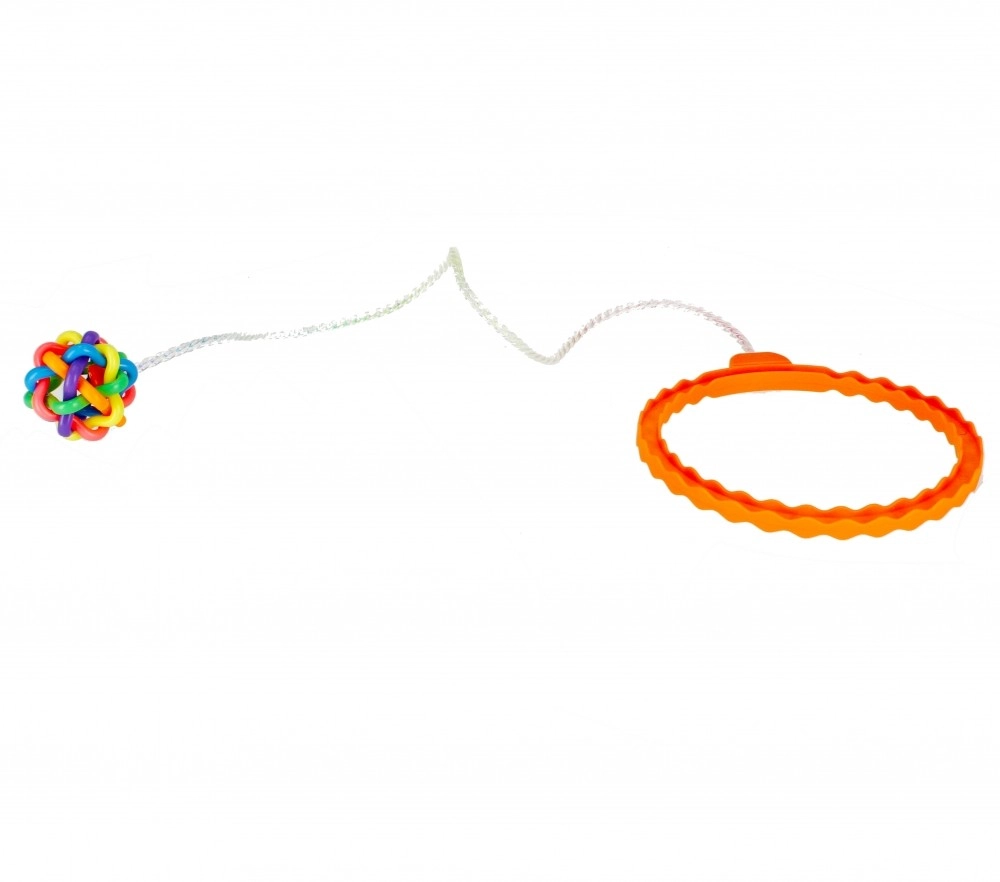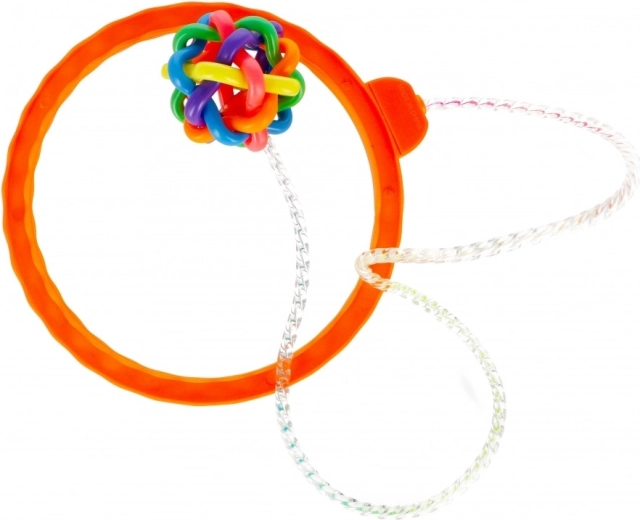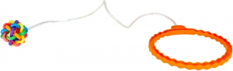 Couleurs vives pour une meilleure visibilité et anneau en plastique léger avec balle reliée par une corde pour un lancer et un contrôle facilités.