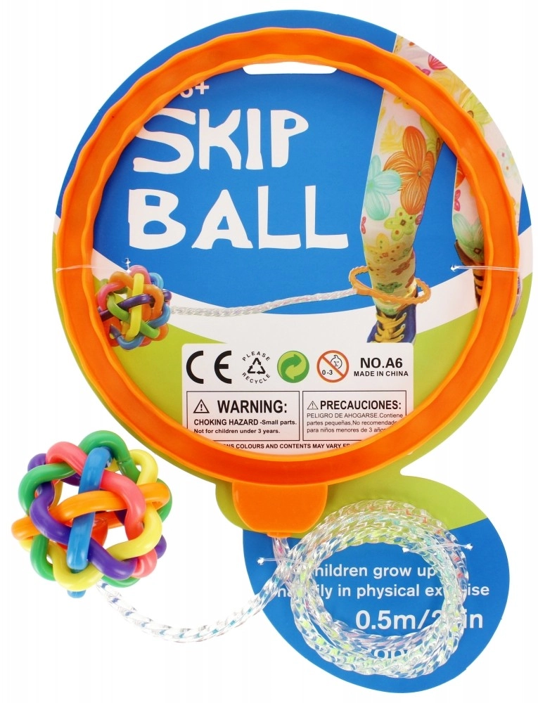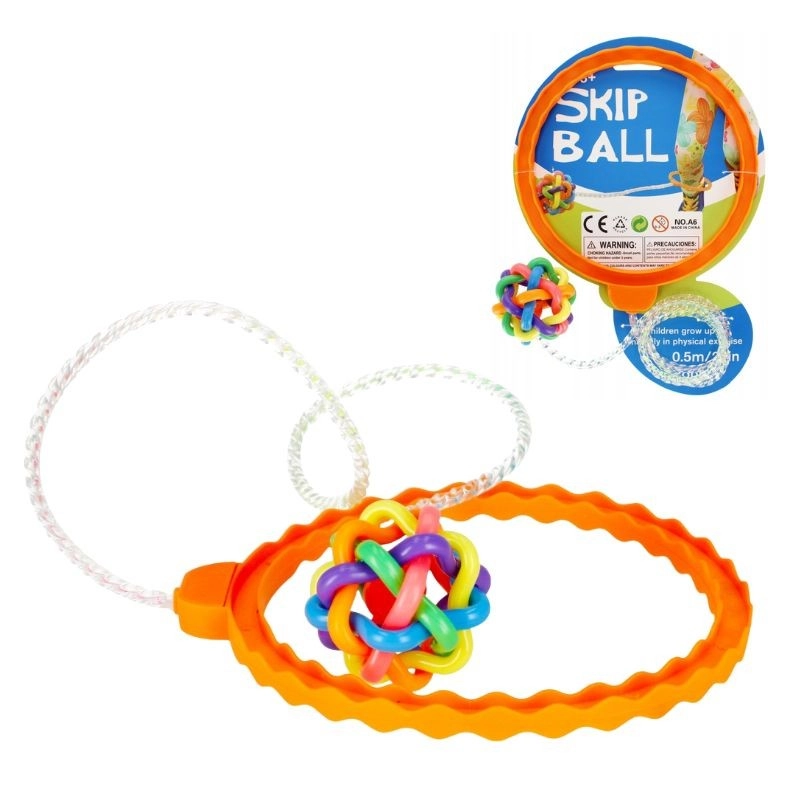 La balle sautante à la cheville avec anneau est un jouet léger et coloré qui motive les enfants à bouger activement. L’anneau se met facilement autour de la cheville, la balle au bout d’une corde se met en rotation et l’enfant saute par-dessus avec l’autre pied. Le jeu développe l’équilibre, l’agilité et la coordination œil–pied.