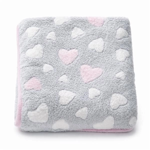 La couverture rose toute douce avec des cœurs est un accessoire pratique et stylé pour le trousseau, qui ravira les parents comme le bébé.