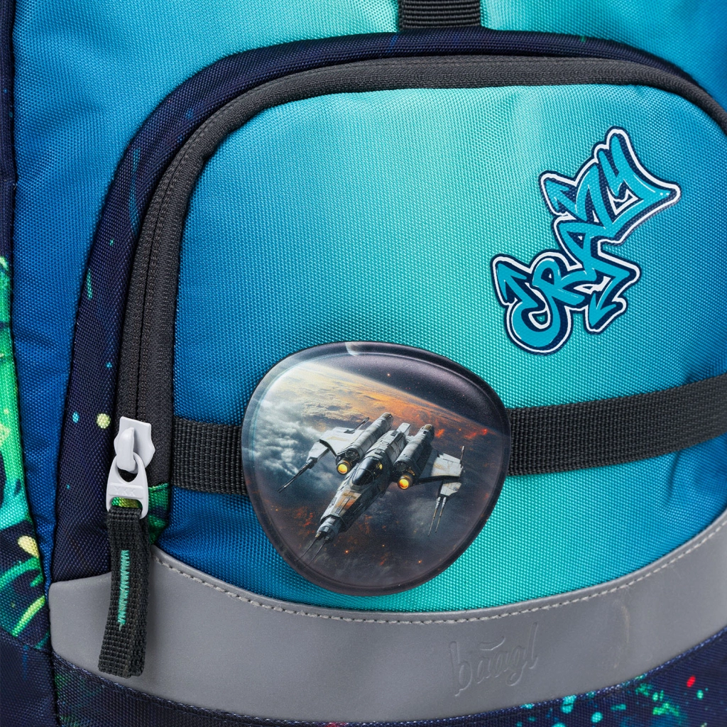 Donnez vie au cartable ou au sac à dos avec les insignes BAAGL Baaglies au motif Espace et Lune. Grâce au velcro, l’échange est rapide et facile, permettant aux enfants de modifier le design selon leur humeur à tout moment. Un look ludique et modulable et plus de 70 motifs encouragent l’originalité et l’imagination.