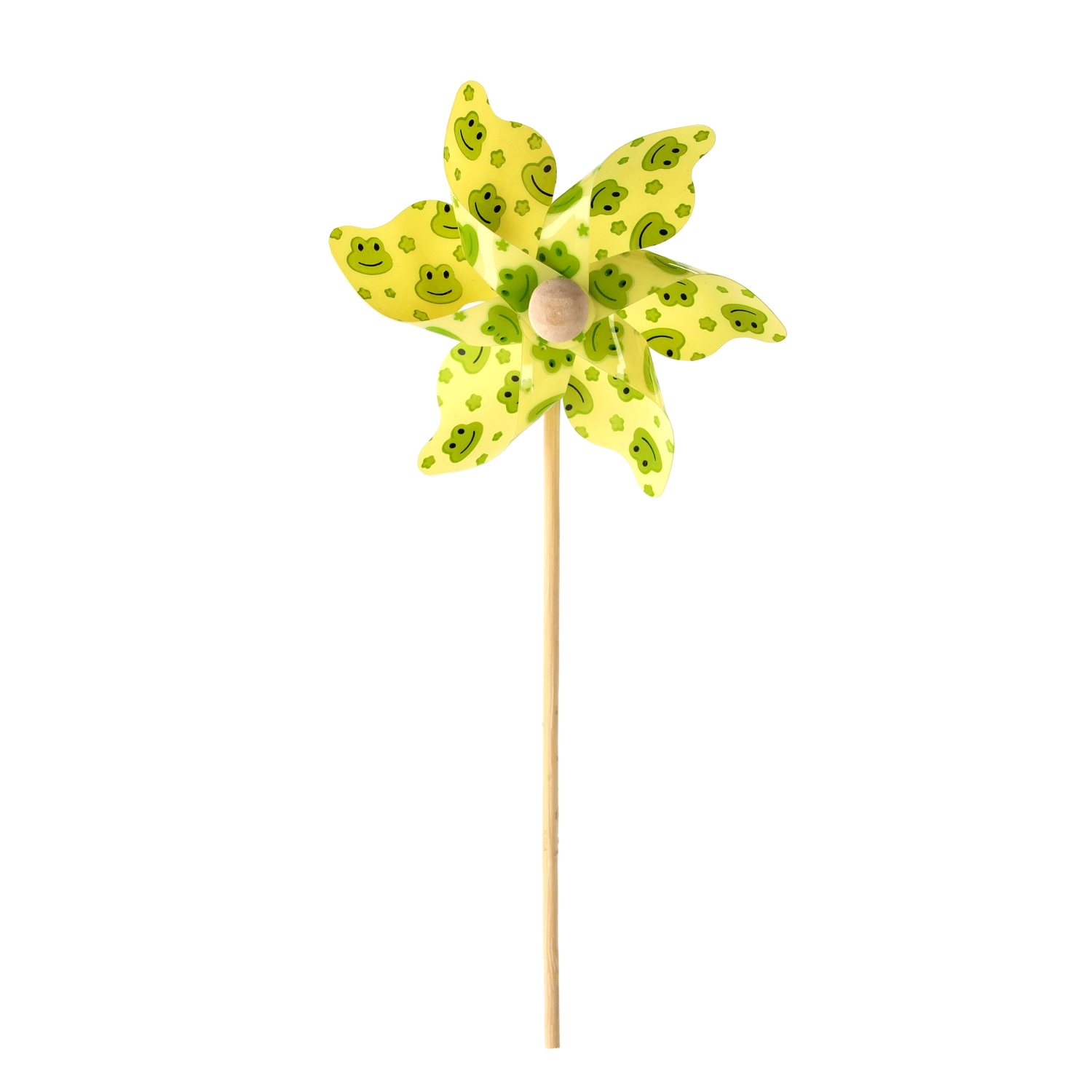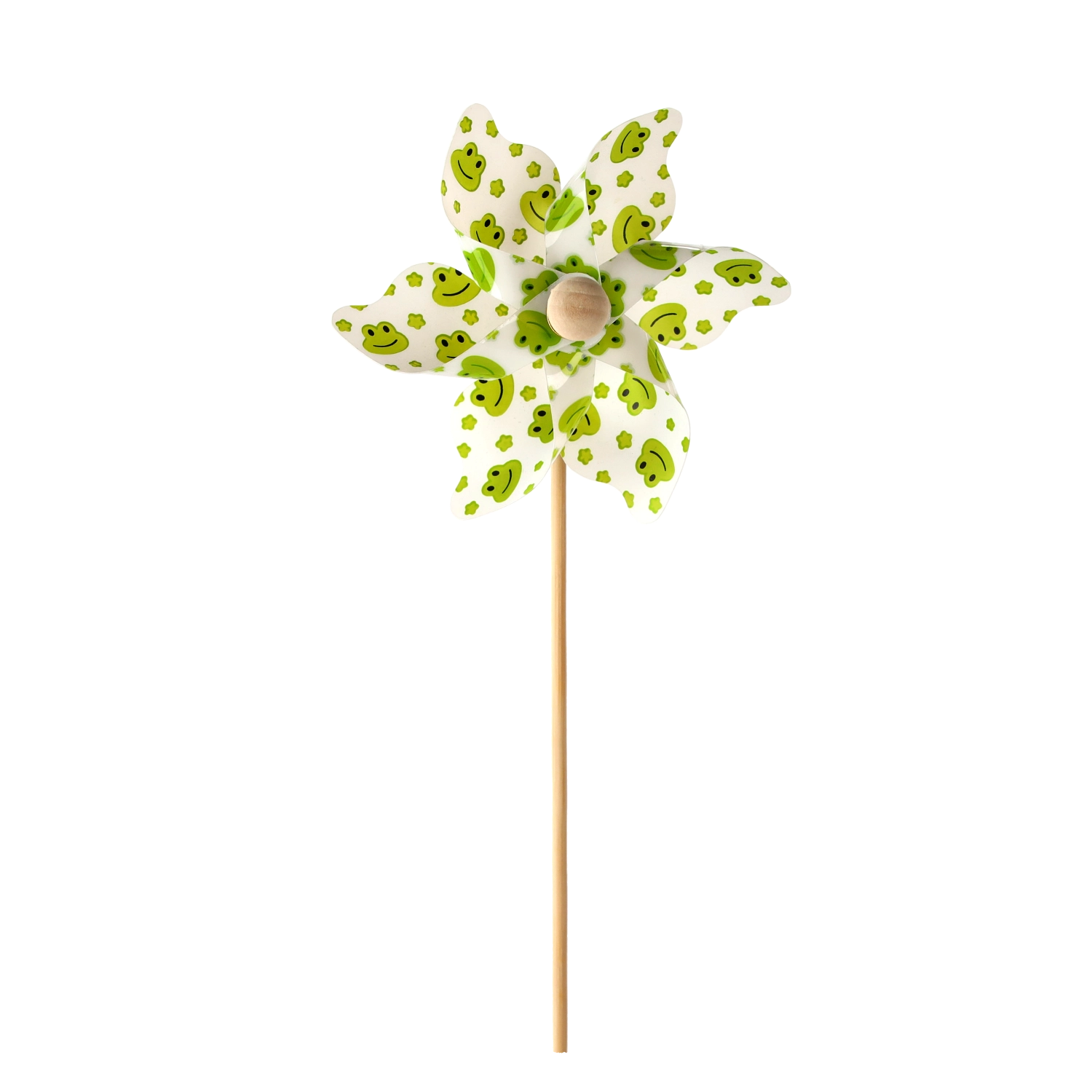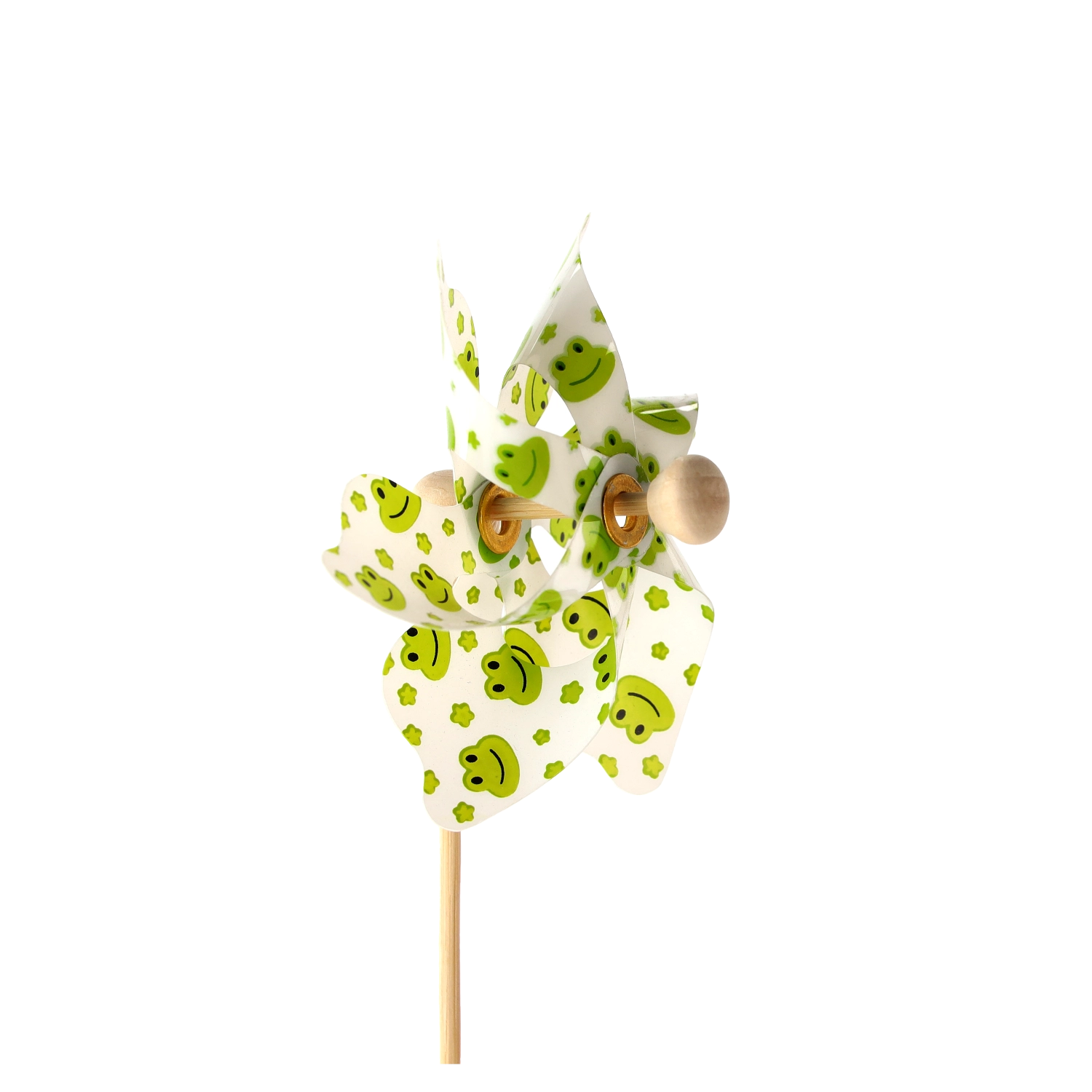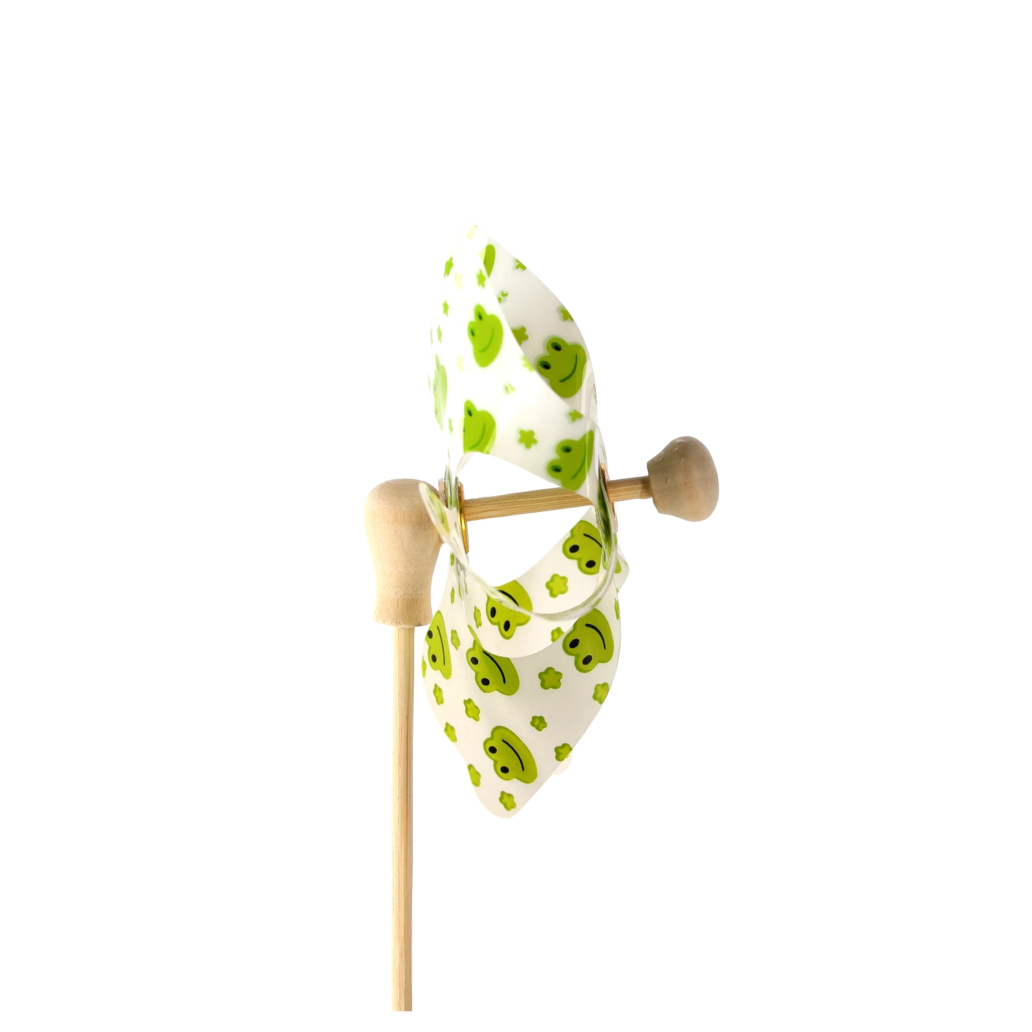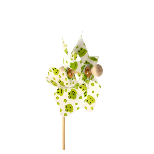 Le moulin à vent avec petites grenouilles est une décoration adorable pour les enfants comme pour les adultes. Grâce à ses pales légères en PVC, il tourne facilement même par légère brise et apporte mouvement, couleurs et joie à votre espace. La tige en bambou naturel assure stabilité et bel aspect.