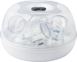 Le stérilisateur ne comporte que trois pièces, il se monte et se nettoie très facilement – après usage, il suffit de l’essuyer ou de le placer au lave-vaisselle. Il convient à la plupart des fours à micro-ondes standards avec un espace intérieur minimal de 187 mm (hauteur) × 280 mm (largeur et profondeur). Compatible avec les biberons et accessoires en matériaux adaptés au micro-ondes (les biberons en PA et les tétines en PA ne conviennent pas).