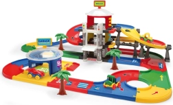 Comprend atelier automobile, station-service, parking et signalisation routière ainsi que 3 petites voitures. Les couleurs vives rendent le jeu clair et stimulent l’imagination.