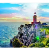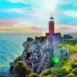 Le motif du phare sur la falaise s’harmonise parfaitement avec la scène marine et crée une expérience visuelle saisissante.