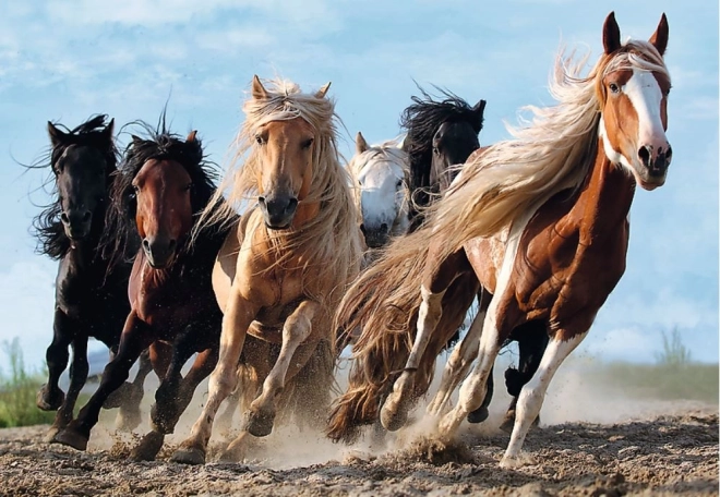 Faites-vous plaisir avec ces puzzles qui, une fois assemblés, capturent une scène époustouflante de chevaux galopants. Les dimensions de l'image finale sont de 68 x 48 cm, offrant une taille idéale pour afficher les détails de cette scène dynamique.