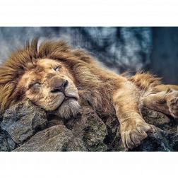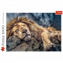 Puzzle avec le motif du lion endormi contenant 1000 pièces et une fois assemblé, il crée une image de dimensions 68x48 cm. Couleurs intenses et de haute qualité, la sécurité de l'assemblage est assurée par du papier avec des encres alimentaires écologiques.
