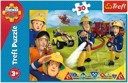 Puzzle 30 pièces avec les personnages préférés du dessin animé Sam le Pompier offre divertissement et développement des compétences. Une fois assemblé, il forme une image de 20x27 cm de haute qualité avec des couleurs riches.