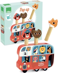 Vilac Jeu de bus à ressort en bois avec des animaux est un magnifique jouet avec des illustrations de la célèbre artiste Ingela P. Arrhenius. Trois personnages adorables – un renard, un chien et un chat – sautent hors du bus, ce qui amusera assurément les enfants.