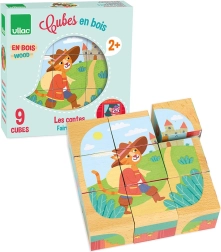 Découvrez la magie des contes classiques avec les cubes en bois Vilac Histoires. Neuf cubes de qualité aux belles illustrations permettent aux enfants de composer jusqu’à six grandes images tirées de contes favoris comme La Petite Sirène, Le Chat botté ou Hansel et Gretel. Ce jouet stimule la pensée logique, la motricité fine et la perception visuelle dès 2 ans.