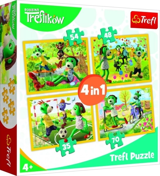 Puzzle 4-en-1 Famille Treflik : quatre puzzles séparés 285 × 205 mm, matériaux écologiques de qualité, papier spécial pour un assemblage facile. Dès 4 ans.