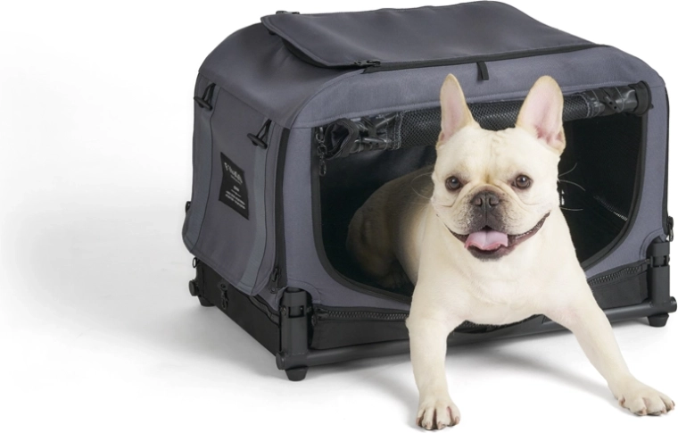 Des ouvertures extra larges à l’avant, sur le côté et sur le dessus facilitent l’entrée et la sortie. La caisse se plie rapidement à plat pour un rangement compact.