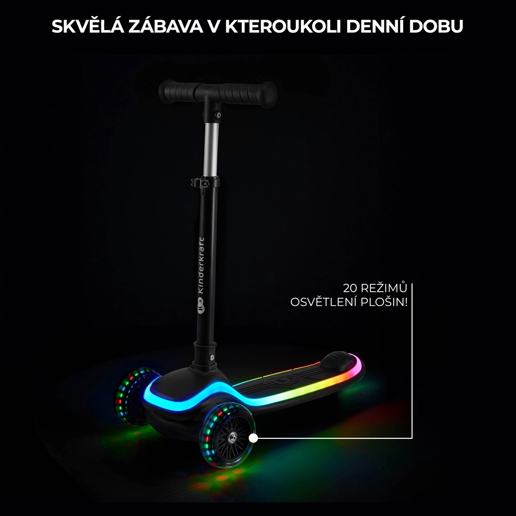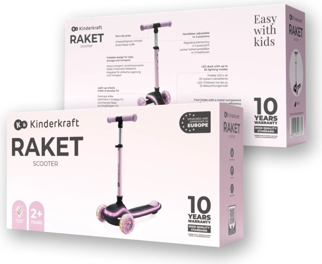 Découvrez le plaisir de rouler avec la trottinette tricycle pour enfants KINDERKRAFT Raket Pink. La direction par inclinaison intuitive développe l’équilibre et la coordination, la plateforme rétroéclairée LED et les roues lumineuses RGB améliorent la visibilité tout en rendant la conduite plus amusante. Grâce au guidon réglable, au pliage rapide et aux roues silencieuses en PU avec roulements ABEC-7, c’est le choix idéal pour les premières expériences de conduite.