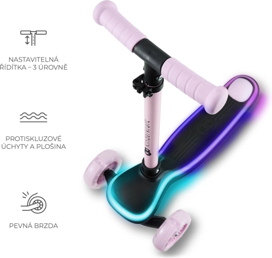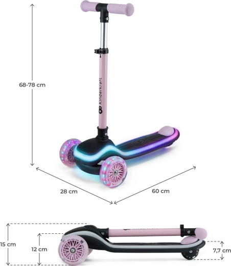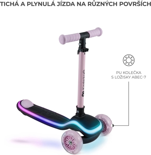 Trottinette tricycle pour enfants KINDERKRAFT Raket Pink avec éclairage LED