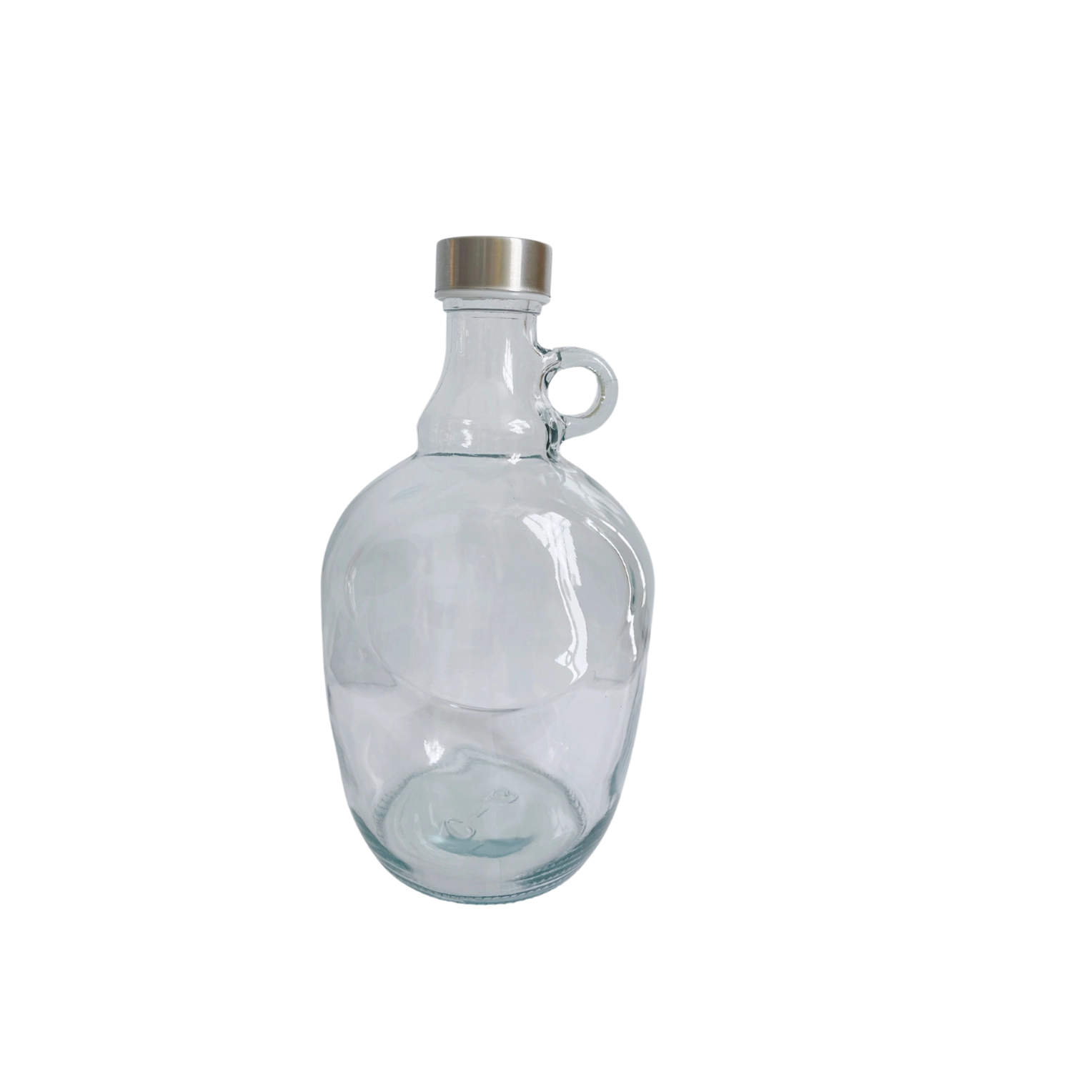 Pratique dame-jeanne en verre d’une capacité de 2 litres, idéale pour conserver vins maison, liqueurs, jus et eau. Fabriquée en verre transparent de qualité pour un contrôle facile du contenu et de la couleur. Anse pour un transport confortable assurant une manipulation sûre, et bouchon à vis en métal maintenant la boisson hermétiquement fermée et protégée de l’oxydation.
