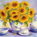 Puzzle Tournesols composés de 500 pièces affichant un magnifique vase avec des tournesols. Une fois terminé, vous aurez une image de 48 x 34 cm.