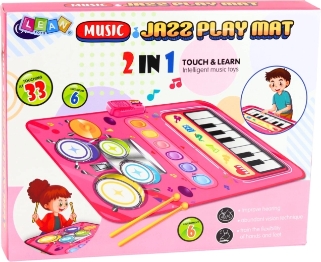 Les touches de piano et les pads de batterie sur un seul tapis développent le rythme, l’oreille musicale et la coordination des mouvements – idéal pour les premiers pas en musique.