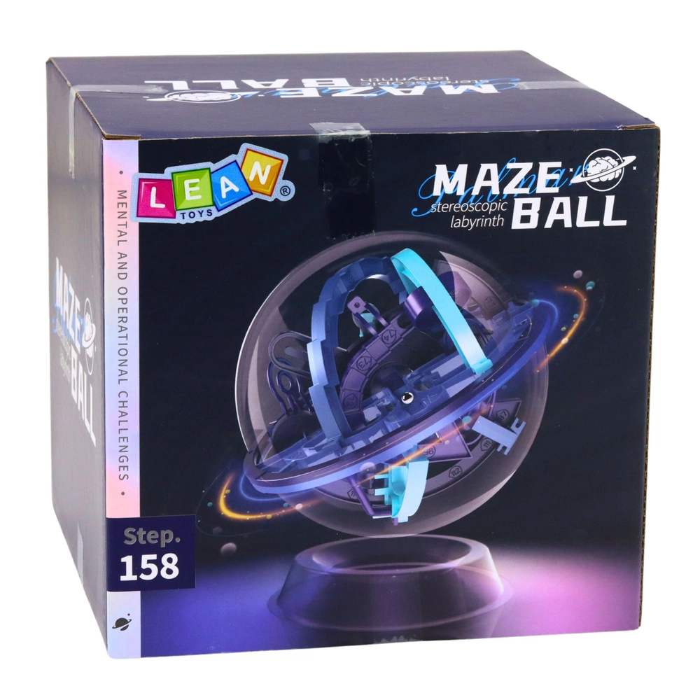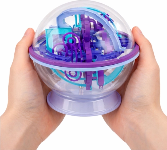 À l’intérieur de la sphère transparente se cache un labyrinthe tridimensionnel rempli de ponts, de virages, de rampes et d’obstacles. Votre tâche consiste à guider la bille métallique sur le bon trajet en inclinant habilement la sphère. Les différentes sections sont marquées par des chiffres et des lettres, ce qui vous permet, après une erreur, de revenir facilement à un point précis sans devoir tout recommencer.