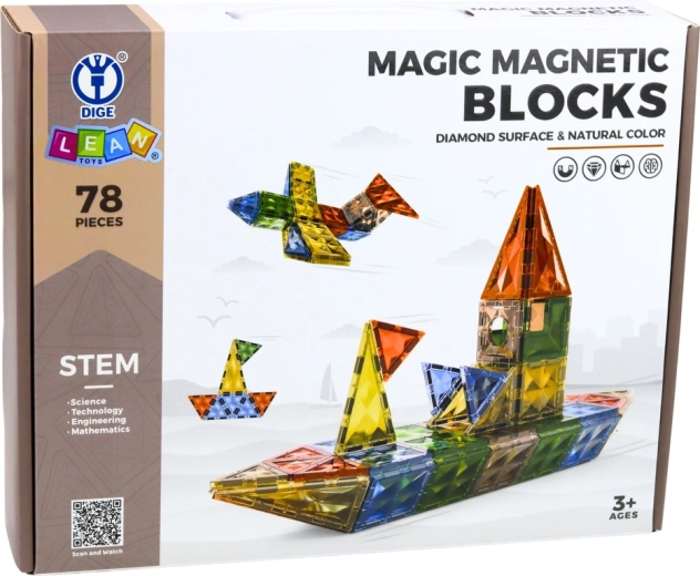 Ce riche ensemble de 78 pièces offre des possibilités infinies pour construire des formes spatiales et des motifs plats. L’assemblage simple grâce aux aimants donne aux enfants confiance pour expérimenter et créer des modèles imaginatifs. Les bords lisses et la fabrication robuste garantissent un jeu en toute sécurité sans parties tranchantes.