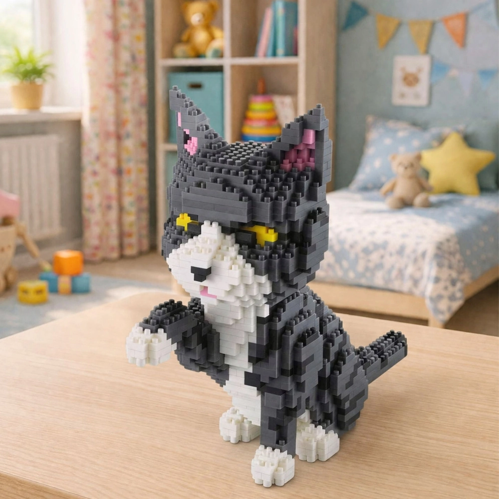 Assemblez une figurine réaliste de chat gris à partir de 1258 pièces. Ce kit de construction 3D créatif offre un montage ludique et relaxant, développe la concentration et la motricité fine et, une fois terminé, devient une décoration élégante pour la maison ou le bureau.