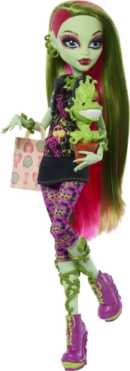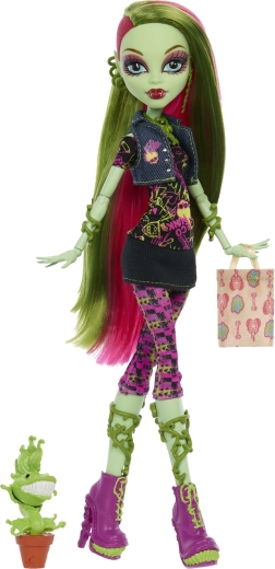 Venus McFlytrap séduit par ses motifs botaniques marqués, sa chevelure rose et verte et des bijoux détaillés. Sa structure souple avec 11 points d’articulation permet des poses réalistes et des histoires créatives dans l’univers MONSTER HIGH. L’ensemble inclut aussi son fidèle animal de compagnie Chewlian, ajoutant une valeur de collection.