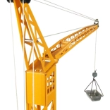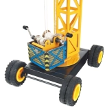 La grue est équipée d'une tour rotative, d'une flèche coulissante et d'un système pour lever les charges. Vous serez particulièrement charmés par la traction manuelle par manivelle, qui permet aux enfants d'exercer leurs compétences motrices et la coordination des mouvements. La longueur de la flèche est de 25 cm et la grue mesure 50 cm de hauteur.