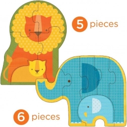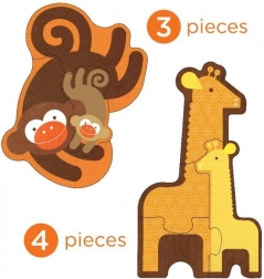 Voici le Petit Collage Premier Puzzle Bébés Safari, le choix idéal pour les petits explorateurs dès 2 ans. Cet ensemble comprend quatre animaux que votre enfant découvrira progressivement sous forme de puzzles plus ou moins difficiles de 3 à 6 pièces.