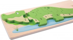 Ce puzzle en bois coloré en forme de crocodile apprend les chiffres de 1 à 10 de manière ludique. 10 pièces solides avec des chiffres et des indicateurs en points favorisent le comptage, la motricité fine, les liens logiques et la concentration. Fabriqué en bois de qualité, conforme aux normes de sécurité européennes.