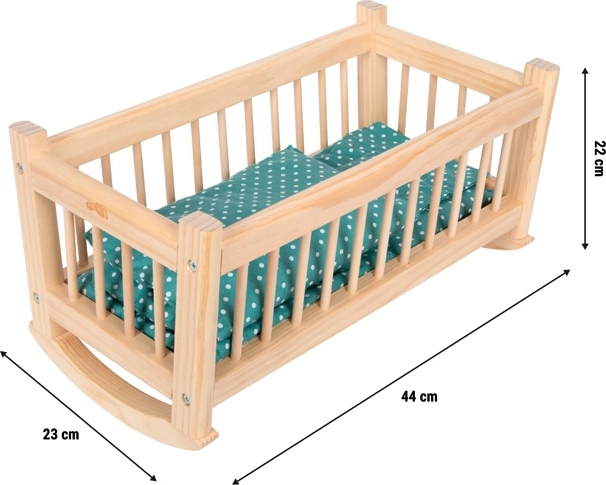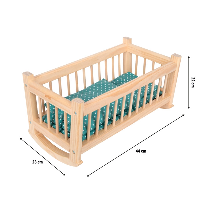 Ce berceau en bois naturel est l’accessoire idéal pour la chambre d’enfant et la maison de poupée. Son cadre de bascule stable assure un mouvement régulier qui apaise poupées et amis en peluche jusqu’à 39 cm. L’ensemble textile assorti au design délicat offre un confort maximal.