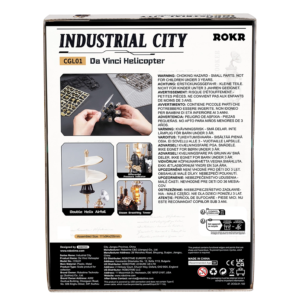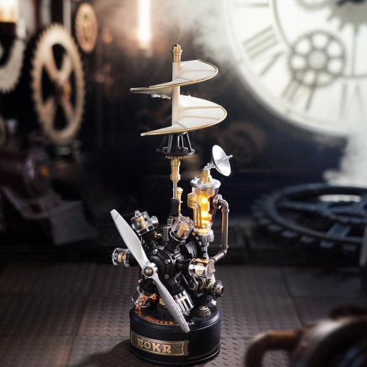 Ce puzzle mécanique 3D au style steampunk renaissance offre un regard unique sur les premières visions de l’aviation. Une fois assemblés, l’hélice et les engrenages s’animent, tandis que l’éclairage LED et l’effet « vapeur » donnent au modèle un caractère vivant et réaliste. Grâce à un guide intuitif et à des pièces numérotées, la construction plaira autant aux débutants habiles qu’aux modélistes expérimentés.