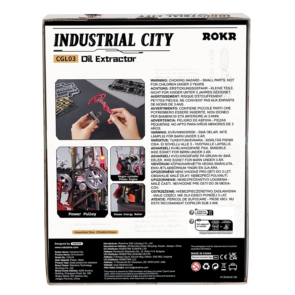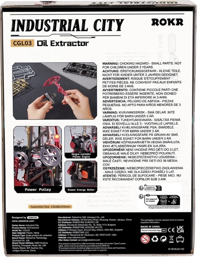 Faisant partie de la série Industrial City, le modèle devient après assemblage une décoration animée captivante et un outil pédagogique de mécanique. Avec sa difficulté moyenne, il séduira autant les débutants que les constructeurs avancés. L’alimentation USB assure un fonctionnement stable sans souci de piles.