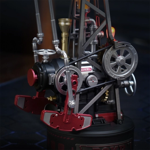 Ce puzzle mécanique, inspiré du pumpjack historique, apporte la technique directement sur votre bureau. Un système élaboré d’engrenages, un mécanisme à manivelle, un contrepoids et un piston garantissent un fonctionnement fluide et authentique. L’effet LED dans la « chaudière à vapeur » simule élégamment la combustion et renforce l’atmosphère industrielle.