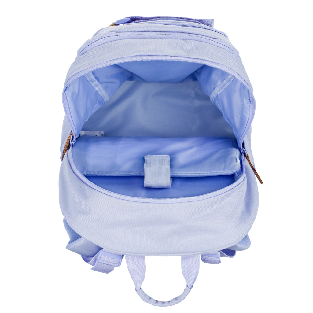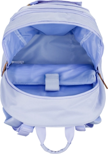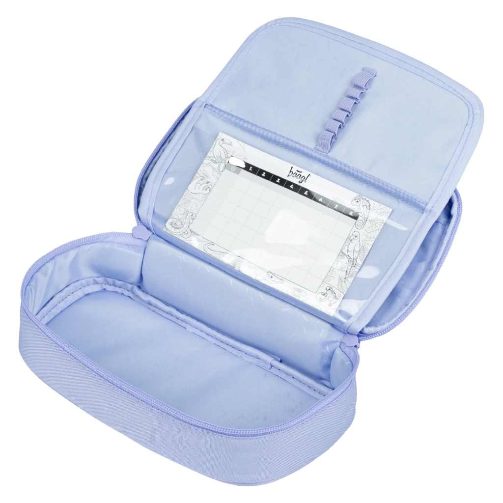 Le set est complété par une trousse rigide avec rabat à volets, poche zippée et emplacement pour l’emploi du temps, un pochon pratique pour chaussures d’intérieur ou affaires de sport avec fermeture par cordons, une banane moderne avec sangle réglable des deux côtés et fermeture éclair double sens de qualité, ainsi qu’une housse de protection pour ordinateur jusqu’à 15". Le tout dans un design lilas harmonisé et élégant.
