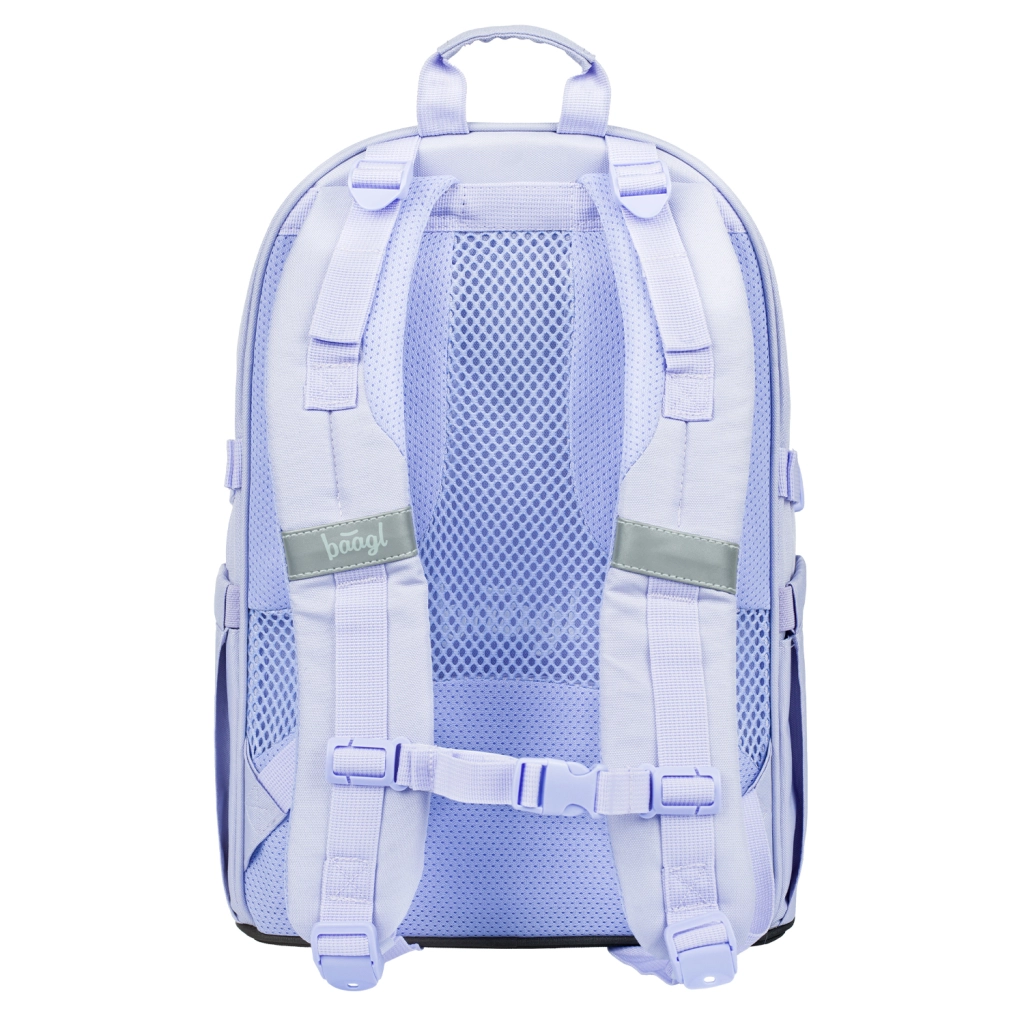 Le set BAAGL SKATE LILAC est conçu pour l’école et les loisirs. La pièce maîtresse est un sac à dos léger (850 g) d’un volume de 25 l et d’une charge maximale de 7 kg, offrant trois compartiments, un organiseur, une poche pour ordinateur 15" et des sangles pour skateboard. Dos ergonomique, bretelles rembourrées et réglables, sangle de poitrine et sangles de compression latérales assurent confort et stabilité au porté.
