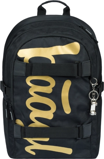 Le set scolaire BAAGL Skate Gold est conçu pour les enfants et ados qui veulent allier fonctionnalité et style. La pièce maîtresse est un sac à dos léger avec dos ergonomique, bretelles réglables et trois compartiments dont une poche pour ordinateur portable 15". Il intègre des sangles pour skateboard, des poches latérales élastiques pour bouteille, un matériau résistant et déperlant, ainsi que des éléments réfléchissants pour la sécurité.