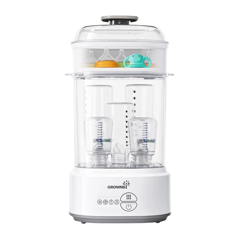 Le stérilisateur-sécheur GROWNSY est la solution pour les parents qui veulent préparer rapidement, en toute sécurité et sans produits chimiques les biberons et accessoires pour une nouvelle utilisation. La vapeur élimine efficacement les micro-organismes et le séchage à 360° empêche leur prolifération ultérieure.