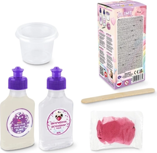 Le kit contient tout le nécessaire — du colle PVA et de l’activateur jusqu’à la spatule et au pot refermable pour un rangement facile, afin que le slime conserve plus longtemps ses propriétés. Les ingrédients sont testés et sûrs, sans microplastiques, fabriqué en Pologne.