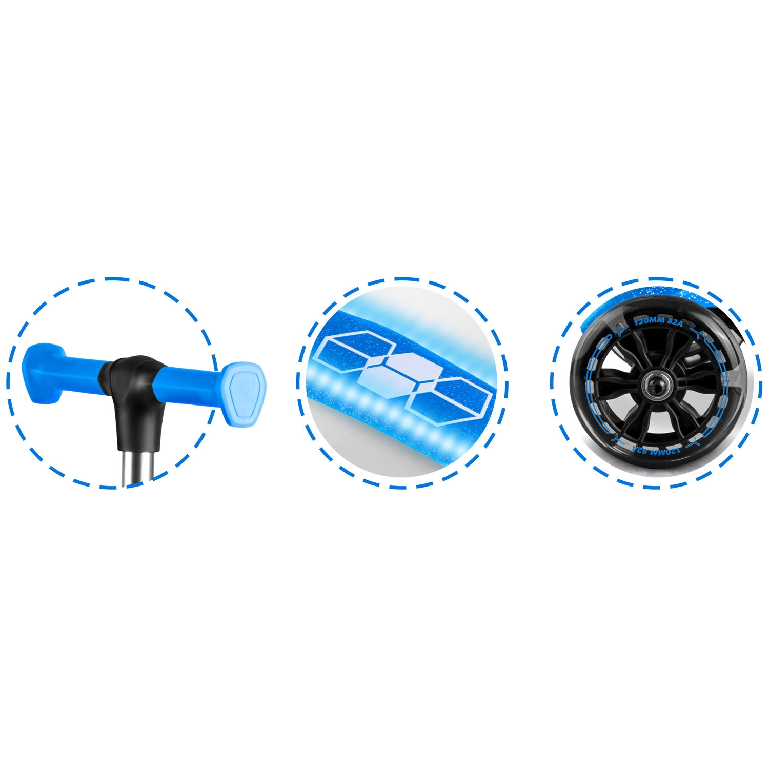 Le rétroéclairage LED du plateau intégré et les roues avant lumineuses avec dynamo illuminent chaque trajet et améliorent la visibilité au crépuscule. Le guidon en aluminium réglable grandit facilement avec l’enfant, assurant plusieurs saisons d’utilisation. La construction robuste est conçue pour un usage quotidien et répond aux exigences du marquage CE et des normes EN71-1/2/3.