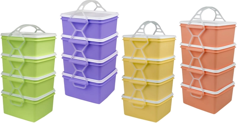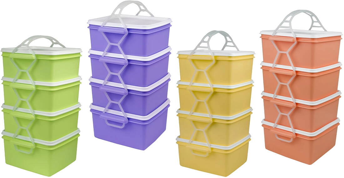 Pratique porte-repas rectangulaire avec quatre contenants séparés de 1,2 l, idéal pour transporter au quotidien déjeuners et collations. Les éléments sont solidement reliés par une poignée pour un port confortable et une bonne stabilité. Grande capacité, plastique résistant et assortiment de couleurs vives en font un excellent choix pour le travail, l’école ou les déplacements.