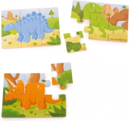 Le set comprend trois puzzles distincts avec différents dinosaures aux couleurs contrastées, qui motivent les enfants à assembler encore et encore.