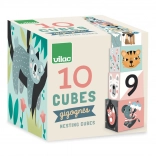 Découvrez ce puzzle qui combine amusement et apprentissage dans un ensemble coloré. Cet ensemble comprend dix blocs en carton décorés avec de magnifiques illustrations d'animaux et de chiffres, créées par Michelle Carlslund.