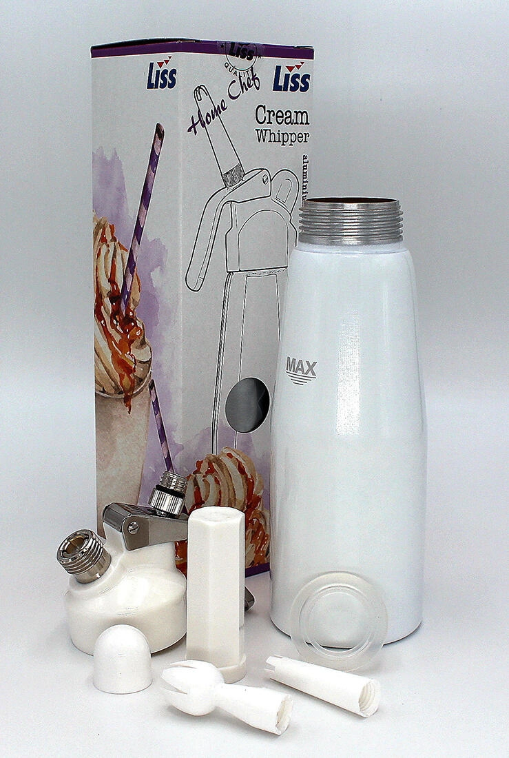 Bouteille à chantilly pratique et élégante de 0,5 l pour préparer une chantilly maison aérienne. Grâce au corps en aluminium avec laque blanche et à la tête de qualité en plastique, acier et silicone, elle est idéale pour un usage quotidien. La compatibilité avec les cartouches usuelles garantit une utilisation facile et d’excellents résultats. Préparation rapide, maniement simple et qualité fiable LISS pour une chantilly parfaite avec le café comme avec les desserts.