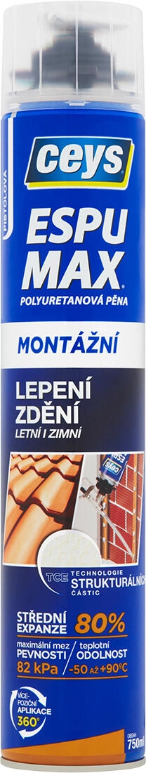 La mousse de montage et de collage CEYS est compacte, dense et conçue pour un collage fiable en intérieur comme en extérieur. Grâce à son expansion moyenne de 80 %, elle assure une liaison précise et propre sans gonflement excessif. Sa formule homologuée est développée également pour la fixation de tuiles de toit avec une sécurité maximale et une résistance durable aux intempéries.