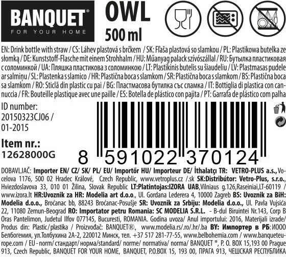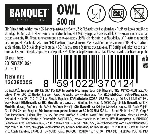 Cette bouteille stylée avec motif hibou est un excellent choix pour les enfants comme pour les adultes. Elle offre une capacité de 500 ml, une paille pratique pour boire confortablement et un corps transparent décoré, grâce auquel vous voyez toujours la quantité restante. Le matériau léger et résistant assure une longue durée de vie et un entretien facile.